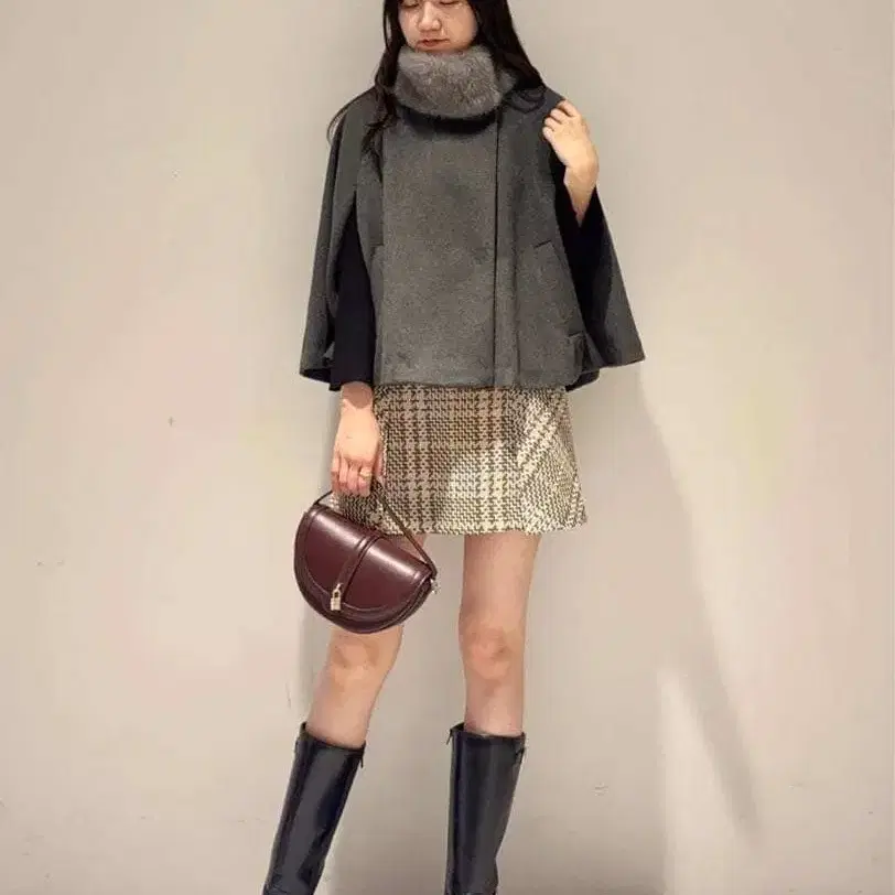 SNIDEL 퍼 부착 숏 케이프 코트 그레이