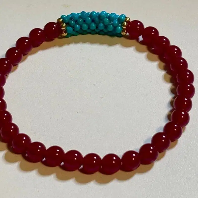 팔찌 루비 비즈와 터콰이즈 비즈의 조합