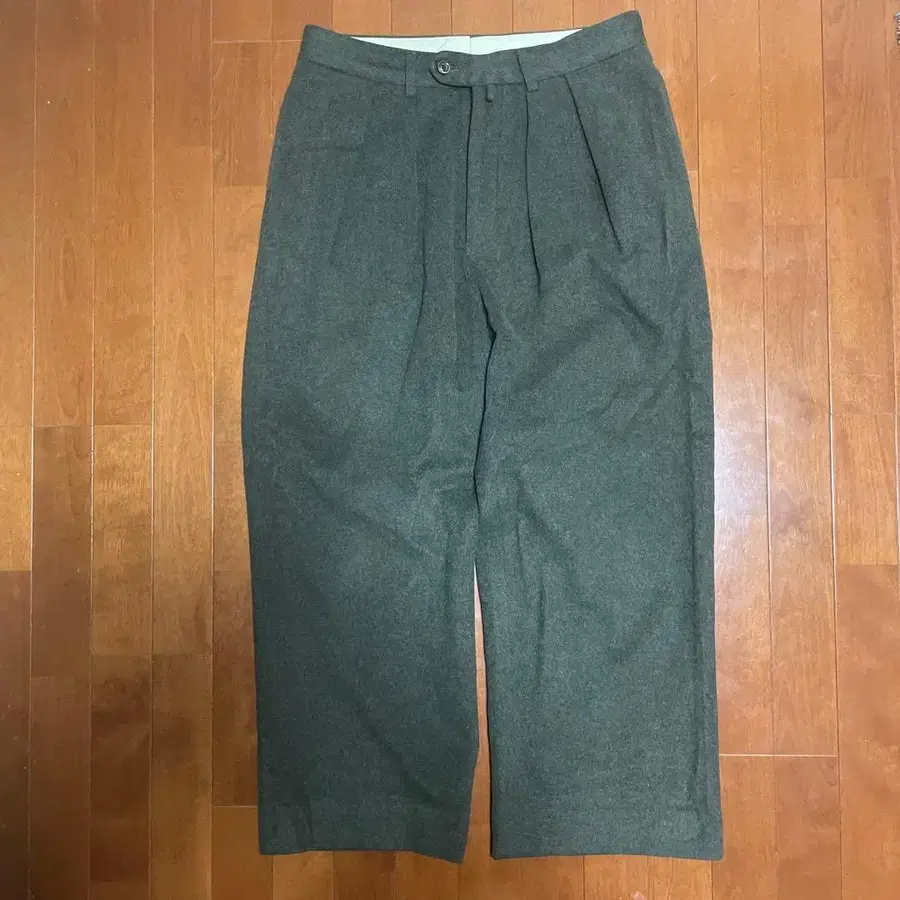 NEAT 울 와이드 2턱 슬랙스 그린 올리브