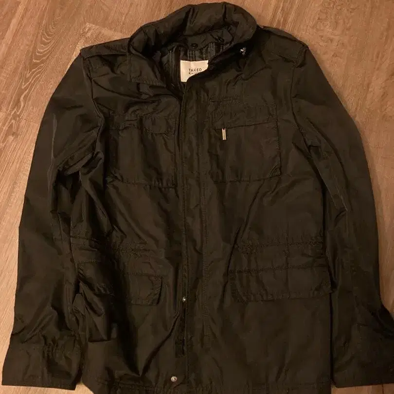 TAKEO KIKUCHI 블랙 밀리터리 자켓 후드 부착