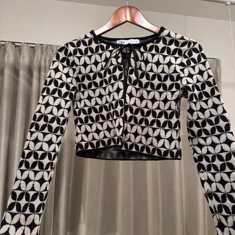 • ZARA 멀티 컬러 기하학 패턴 크롭 가디건 블랙