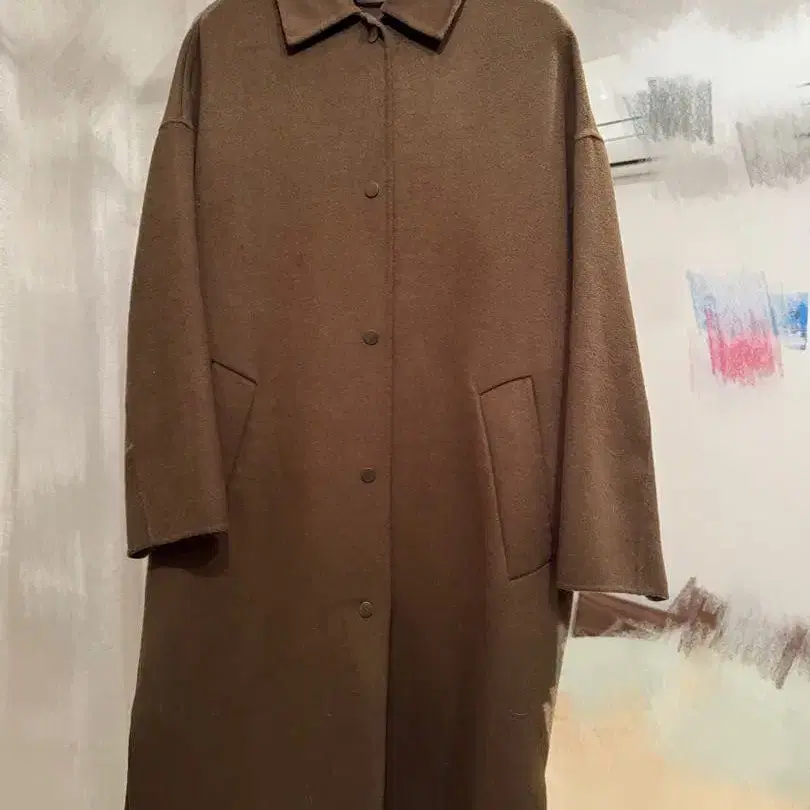 • 베이지 롱 코트 심플한 디자인