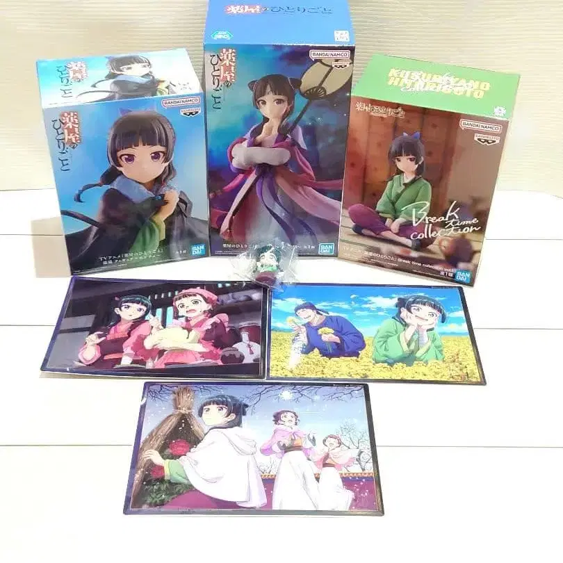 약사의 혼잣말의 마오마오 피규어 3개 • 클리어 포스터 3장 • 마오마오 키링 합계 7점입니다 (낱개 판매 불가합니다).