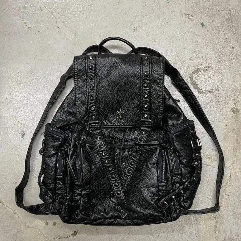 00s 파라슈트 가죽 백팩 y2k 펑크 archive 헤이세이 블랙