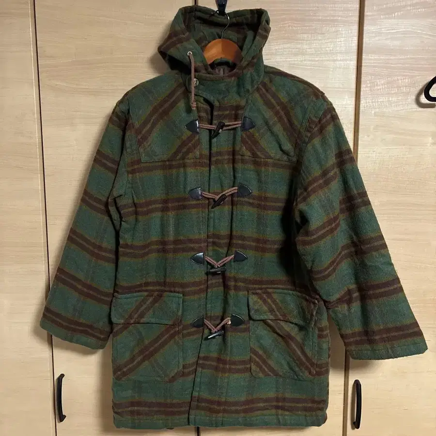 highspirits 더플 코트 후드 부착 그린과 브라운 체크 무늬 L