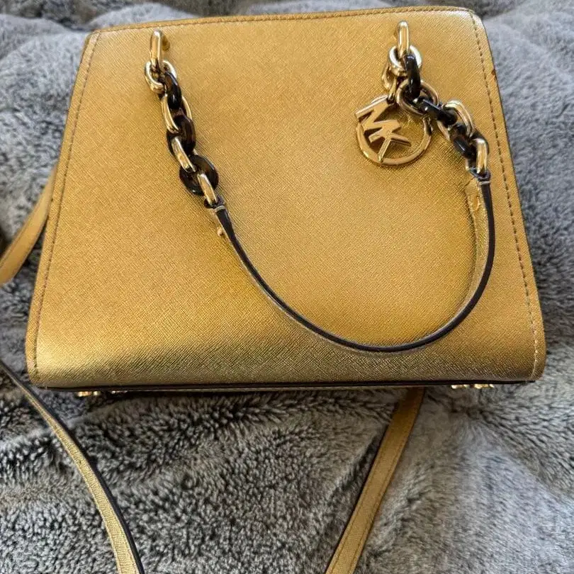 골드 색상의 숄더백, 체인 핸들로 스타일리시합니다. - 색상: 골드 - 내부 구조: 칸막이 포켓, 지퍼 포켓 - 스트랩: 탈부착 가능한 숄더 스트랩 - 장식: 체인 핸들, 로고 참 방문해 주셔서 감사합니다. 중고품이므로 이해하신 분만 구매 부탁드립니다. 마이클코어스 브랜드 백