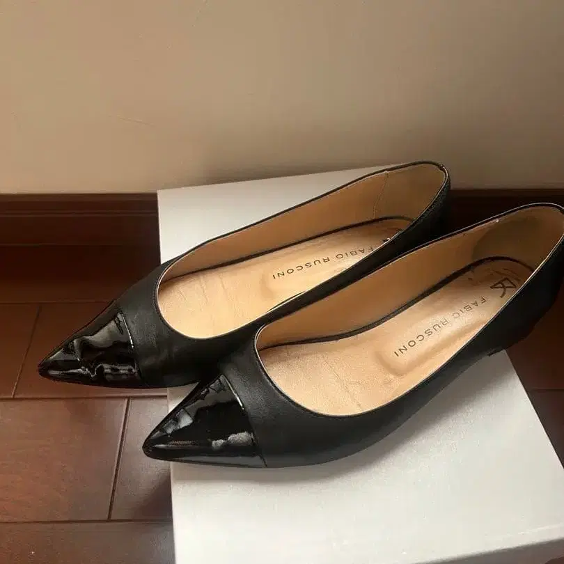 파비오 루스코니 블랙 가죽 스틸레토 플랫슈즈