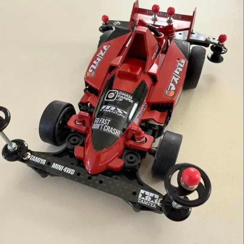 한 번도 주행하지 않았습니다. 자택 보관 - 브랜드: Tamiya - 모델명: Mini 4WD - 색상: 레드/블랙 - 특징: 슈퍼 하드 타이어 - 액세서리: 바디 부품, 윙 - 구동 방식: 4WD - 스케일: 1/32