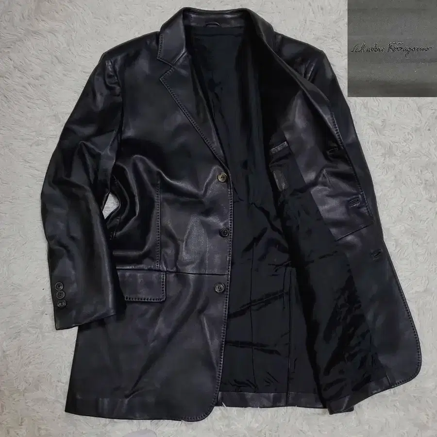 수회 사용 L~XL 페라가모 가죽 테일러드 자켓 블랙 이탈리아제 50 Ferragamo 소가죽 천연 가죽 사이드 벤트 블랙