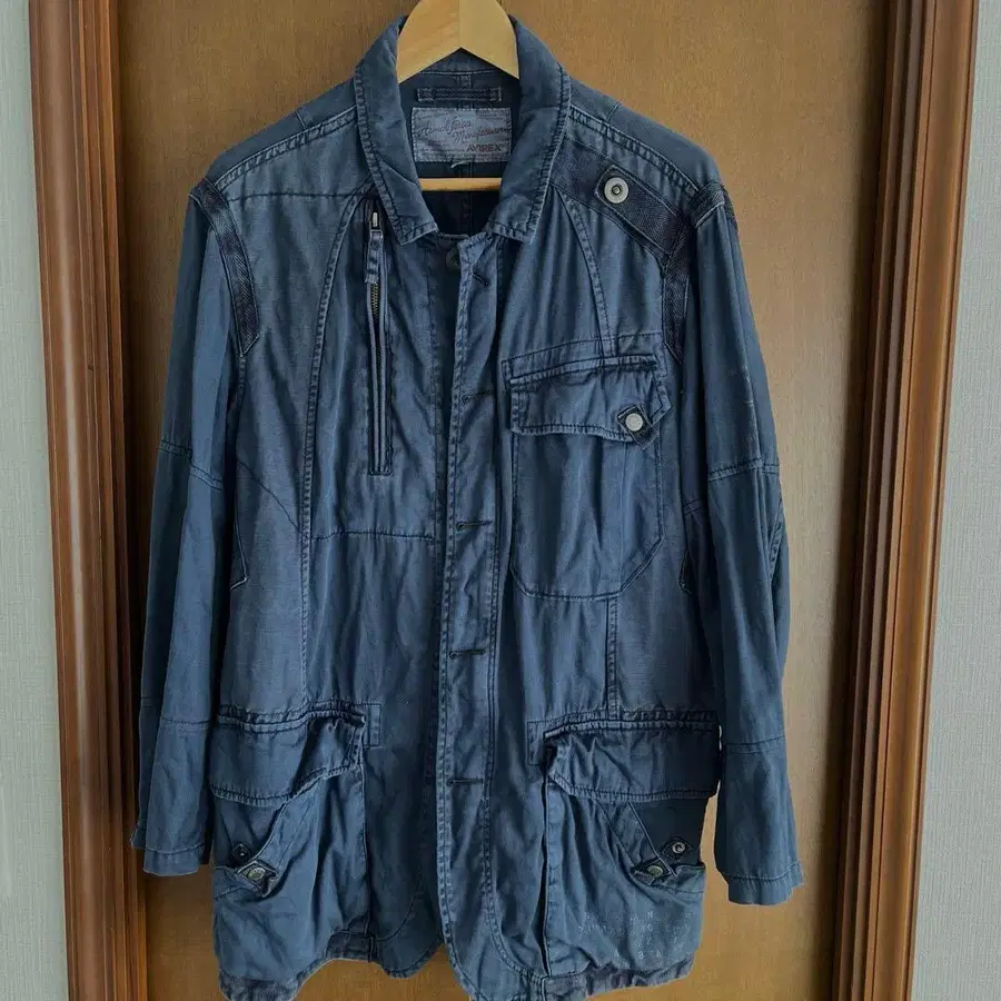 다크 블루 AVIREX 밀리터리 자켓, 4개의 포켓이 있어 실용적입니다. - 브랜드: AVIREX - 색상: 다크 블루 - 스타일: 밀리터리 자켓 - 포켓 수: 4개 - 소재: 코튼 혼방 방문해 주셔서 감사합니다.