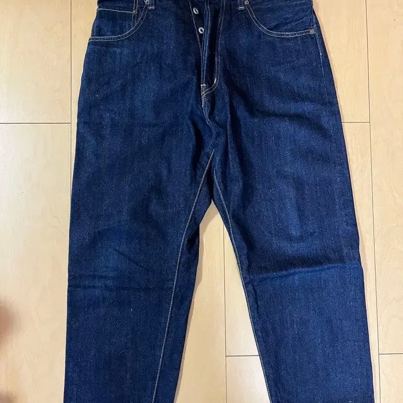 어반 리서치 도어스 다크 네이비 데님 버튼 플라이 셀비지 와이드 테이퍼드