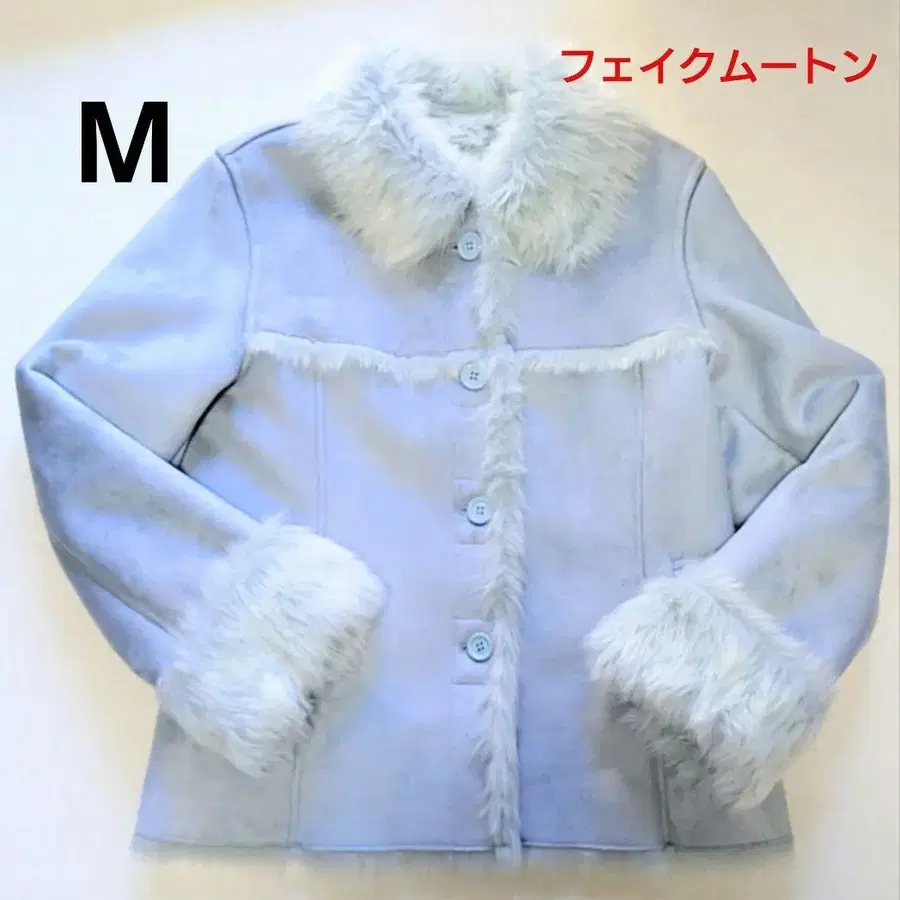 여성용 라이트 블루 페이크 스웨이드 무스탕 코트 페이크 퍼 M 사이즈