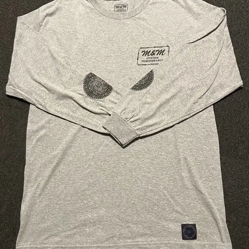 마시스 엠앤엠 콜라보 롱T입니다. 컬러 그레이 사이즈 L 눈에 띄는 얼룩 등은 없으며 문제없이 착용 가능합니다.