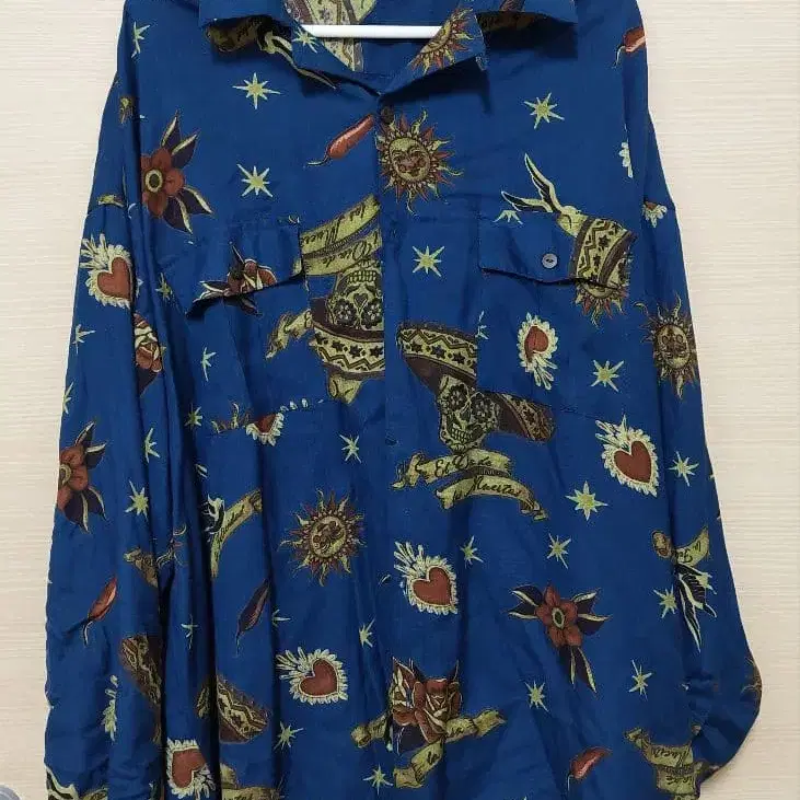 차이하네에서 구매했습니다. 한 번 착용 후 옷장에 보관했습니다. 얼룩은 없지만, 원단 특성상 약간의 주름은 있습니다. 남성용이지만, 넉넉하게 여성용으로도 귀엽게 착용 가능합니다. [모델번호: IAC-4154-2024] 멕시코 '망자의 날' 카라베라 모티브의 올 패턴 남성용 셔츠. 드레이프성이 좋은 레이온 소재로 부드러운 촉감입니다. 멕시코의 생생한 세계관에서 영감을 받은 색상 전개의 아이템입니다. 레이온 100% 인도 기장 75cm 어깨 너비 62.5cm 가슴둘레 139cm 소매 길이 51.8cm [ 색상 전개 ] 블루