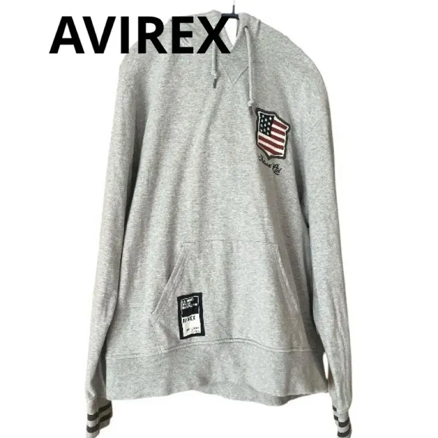AVIREX 미국 국기 와펜 로고 자수 그레이 후드티 여성 트레이너 M