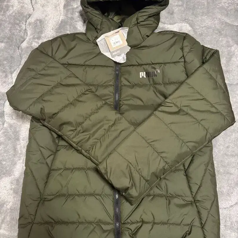 PUMA 후드 부착 다운 자켓 올리브 그린