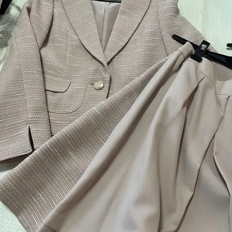 핑크 트위드 자켓 스커트 세트 여성용 세레모니 수트 M 미사용