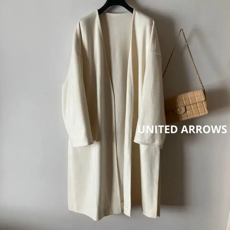 유나이티드 애로우즈 고급 더블 페이스 울 노카라 가운 코트