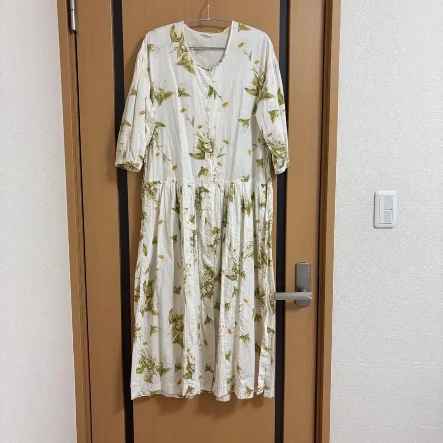 핑크하우스의 은방울꽃과 마가렛 원피스입니다. - 색상: 화이트, 그린 꽃무늬 - 디자인: V넥, 긴팔 - 버튼: 화이트 버튼 - 스타일: A라인, 플레어 - 소재: 코튼 혼합 방문해 주셔서 감사합니다.