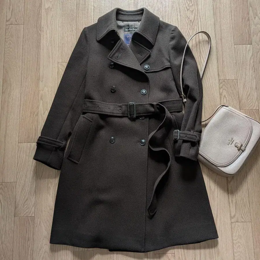 유나이티드 애로우즈 벨티드 코트 브라운 캐시미어 혼방 울 코트 M