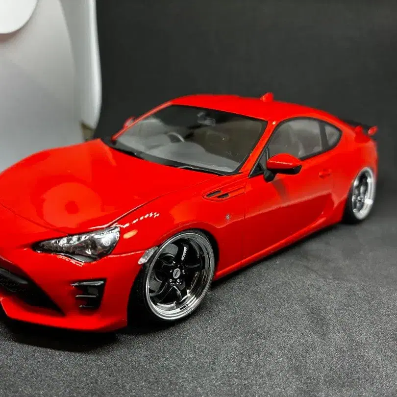 아오시마 1/24 도요타 86 제작품입니다. 섀시 뒷면에 케이스 고정용 구멍이 있습니다 (9번째 사진 참조). 포장, 발송에는 충분히 배려하겠지만, 발송 중 부품의 분리 (내부 부품이나 사이드 미러 등)에 관해서는 직접 수리 부탁드립니다.