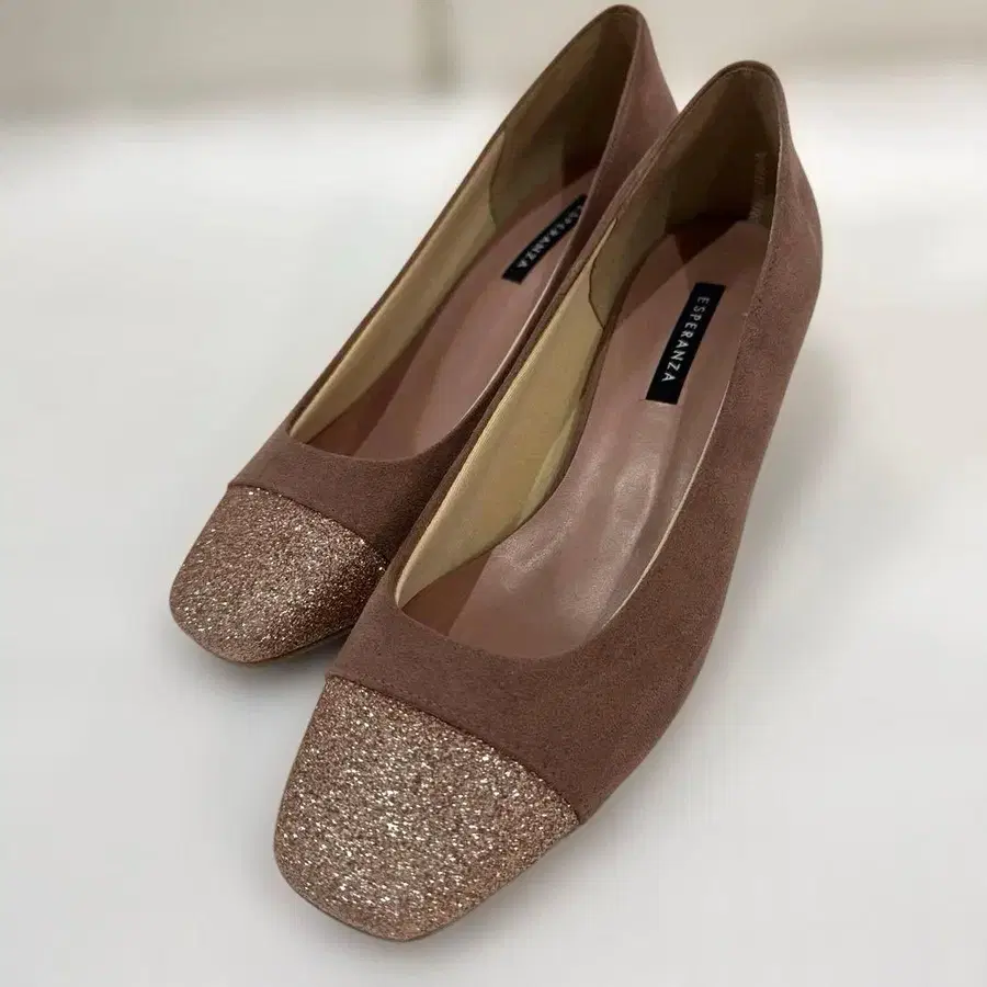 ESPERANZA 더스티 핑크 글리터 펌프스 일본제 스웨이드 라메