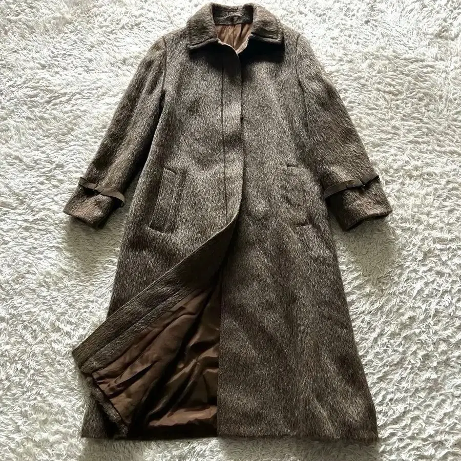 라마 울 롱 코트 고급 소재 엘레강트 고급스러움 아우터 브라운