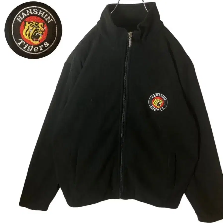 레어 구제 의류 한신 타이거즈 심플 블랙 플리스 블루종 루즈한 사이즈