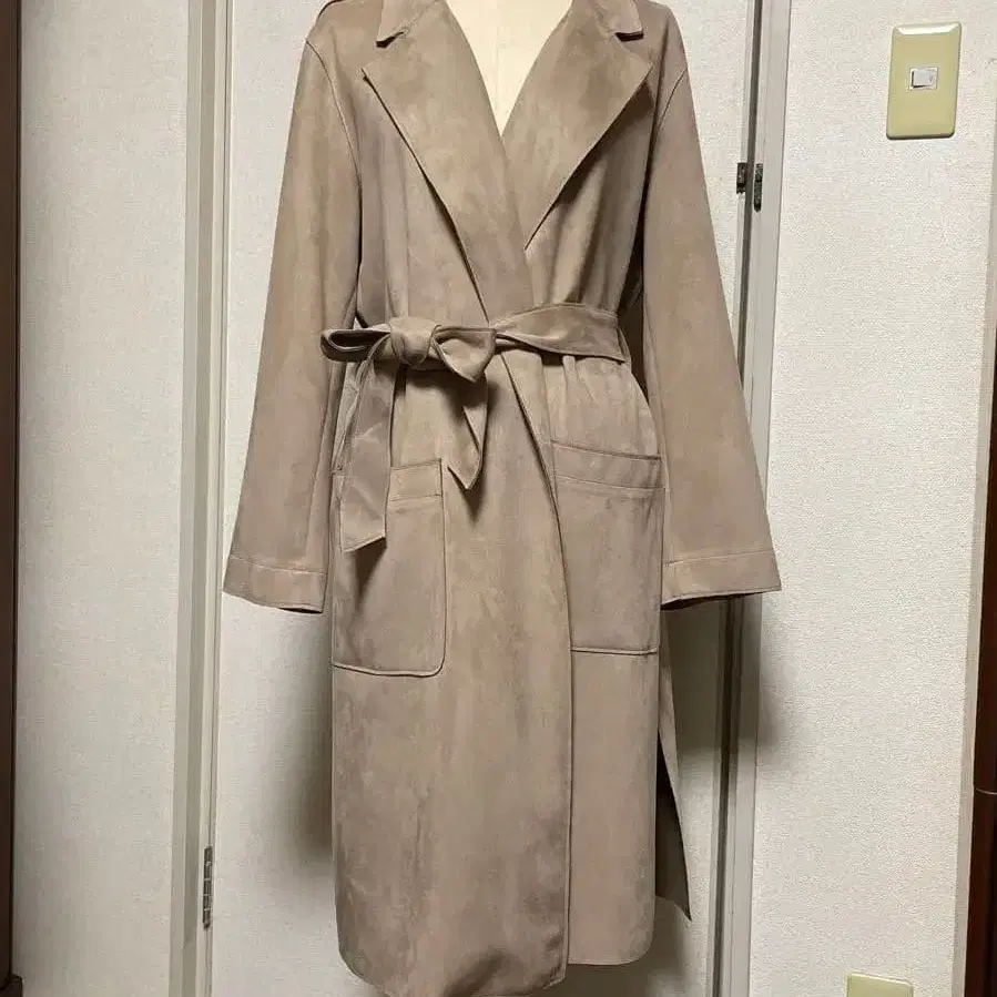 ZARA 페이크 스웨이드 얇은 소재 코트 색상: 베이지 사이즈: L 매년 ZARA에서 출시되었던 페이크 스웨이드 코트입니다. 얇고 부드러워 가볍게 걸치기 좋습니다(^^) 트렌치코트나 가운 코트와 비슷한 디자인입니다. 1~2회 착용했습니다.