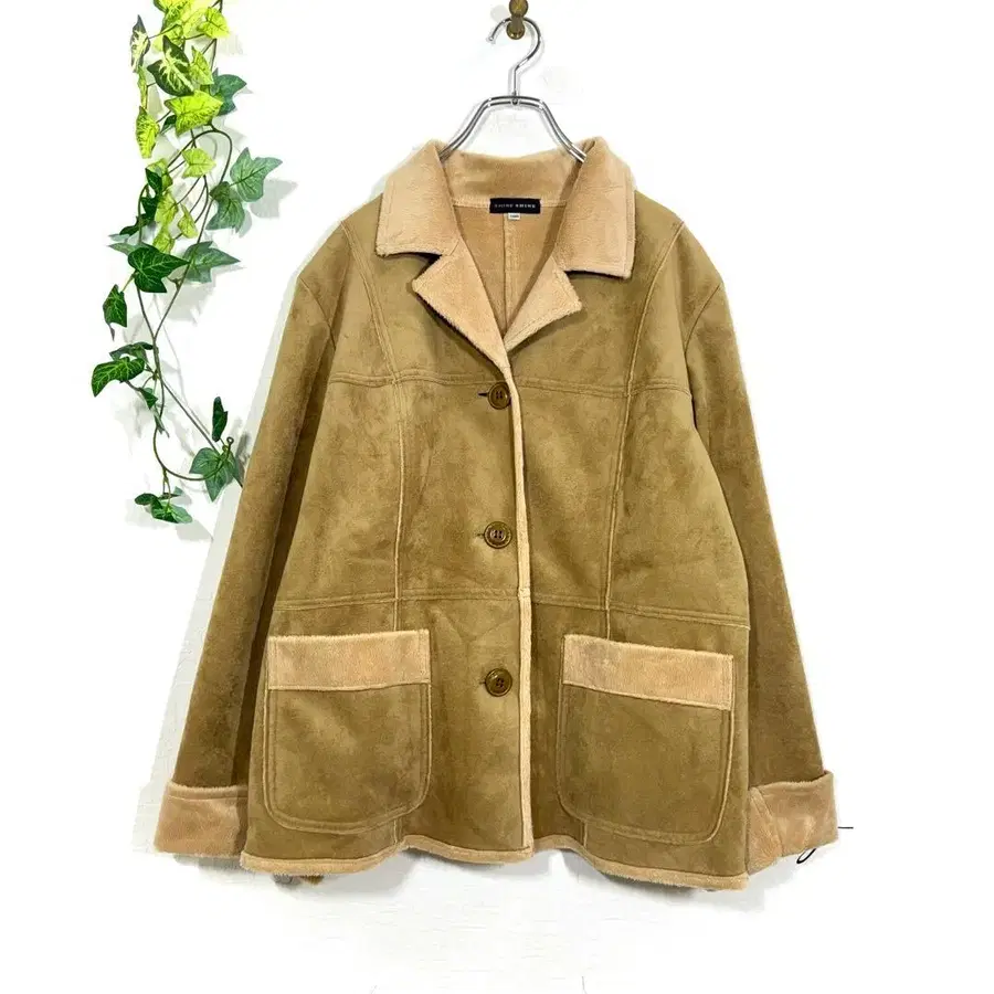 페이크 무스탕과 보아 소재의 따뜻한 무스탕 코트입니다. 카멜 (브라운)과 베이지의 배색이 귀엽고, 빅 사이즈로 편안하게 착용할 수 있습니다. 가을/겨울 방한복으로 훌륭한 아이템입니다. 안감 전체가 보아 소재라 촉감도 좋고, 버튼이 악센트가 된 디자인입니다.