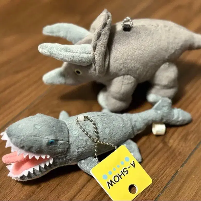 A-SHOW의 모사사우루스와 트리케라톱스 봉제 인형. 키링 타입. 택 포함 새상품이지만, 자택 보관품이므로 사소한 점이 신경 쓰이는 분은 구매를 자제해주세요. 방문해 주셔서 감사합니다.