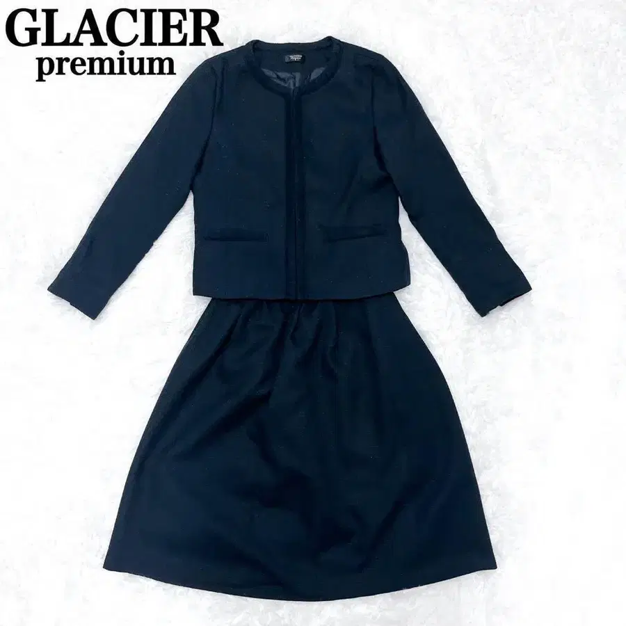 새상품급 GLACIER 그라시아 노카라 스커트 엄마 여성 수트 네이비 트위드 S사이즈