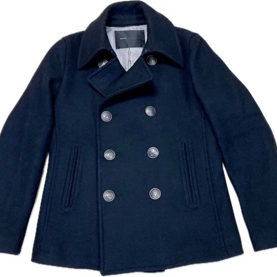 ■ 더블, 버튼 8개 중 3개 잠금, 백 슬릿 11cm, 프론트 세로 슬릿 포켓, 안쪽 포켓 2개, 어깨 패드 없음, 소매 본식 개방, 턱 워머 부착, 오리지널 메탈 버튼 사용의 피코트입니다. 탄탄한 멜톤 소재이며 안쪽이 퀼팅 처리되어 있습니다.
