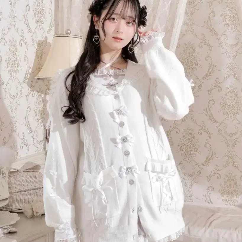 • 택 포함 새상품 마즈 MA*RS 가디건 펄 리본 니트 화이트 지뢰계