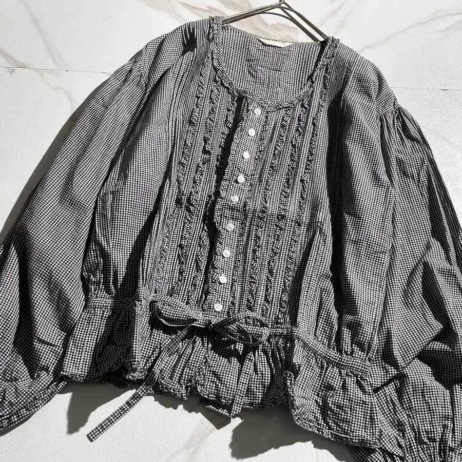 구하기 어려움 핑크하우스 긴팔 셔츠 블라우스 깅엄 체크 블랙