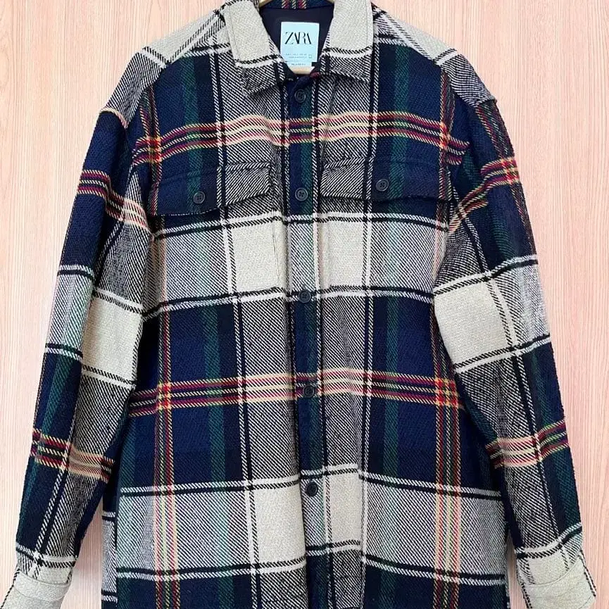 ZARA의 체크 무늬 오버 사이즈 자켓입니다. 안감이 있어 아우터로도 착용 가능합니다. 캐주얼 스타일에 딱 맞는 아이템입니다.