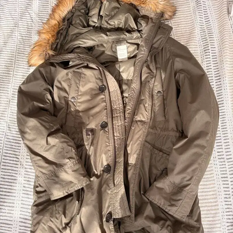 백 넘버 카키 퍼 후드 모즈 코트 S