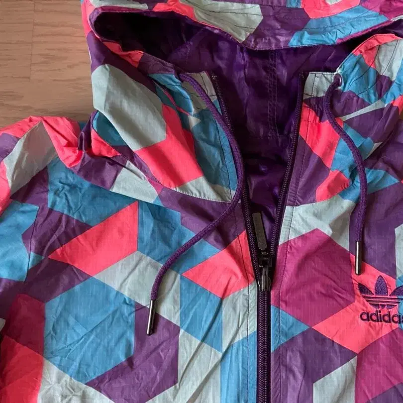 기하학 패턴 디자인이 특징인 adidas 후드 부착 자켓. - 브랜드: adidas - 색상: 핑크/파랑/보라색/스카이블루 - 디자인: 기하학 패턴 - 스타일: 후드 부착 - 특징: 지퍼 부착 - 디자인: 기하학 패턴 안감 - 로고: adidas 로고 방문해 주셔서 감사합니다.