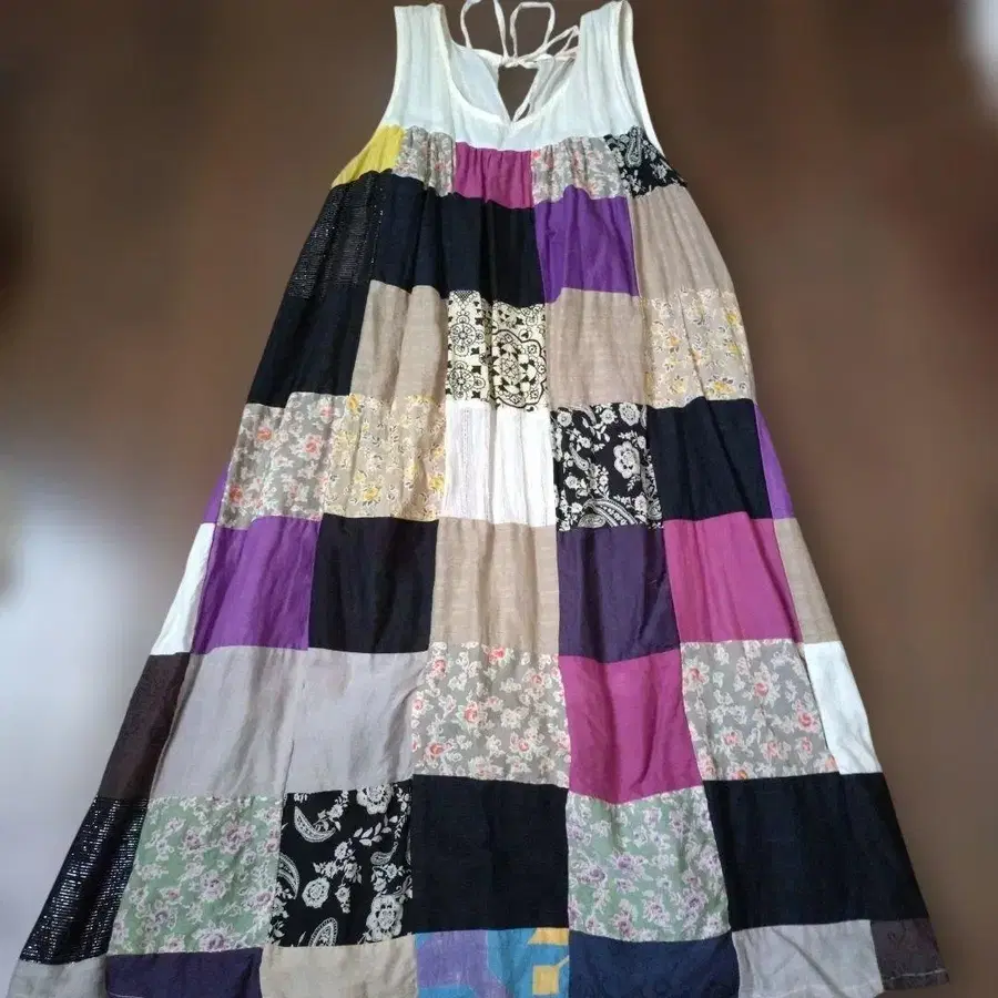 [ 개성파 ] 에스닉 패치워크 패턴 맥시 길이 원피스 컬러풀 비즈 장식