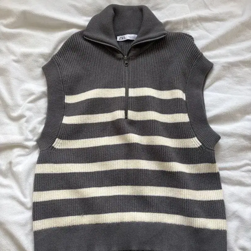 ZARA 하이넥 니트 베스트 그레이 & 화이트