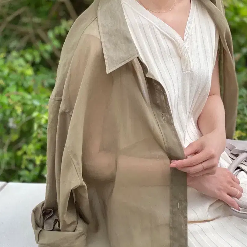 [ 새상품급 ] NOBLE 시스루 레귤러 셔츠 카키/올리브