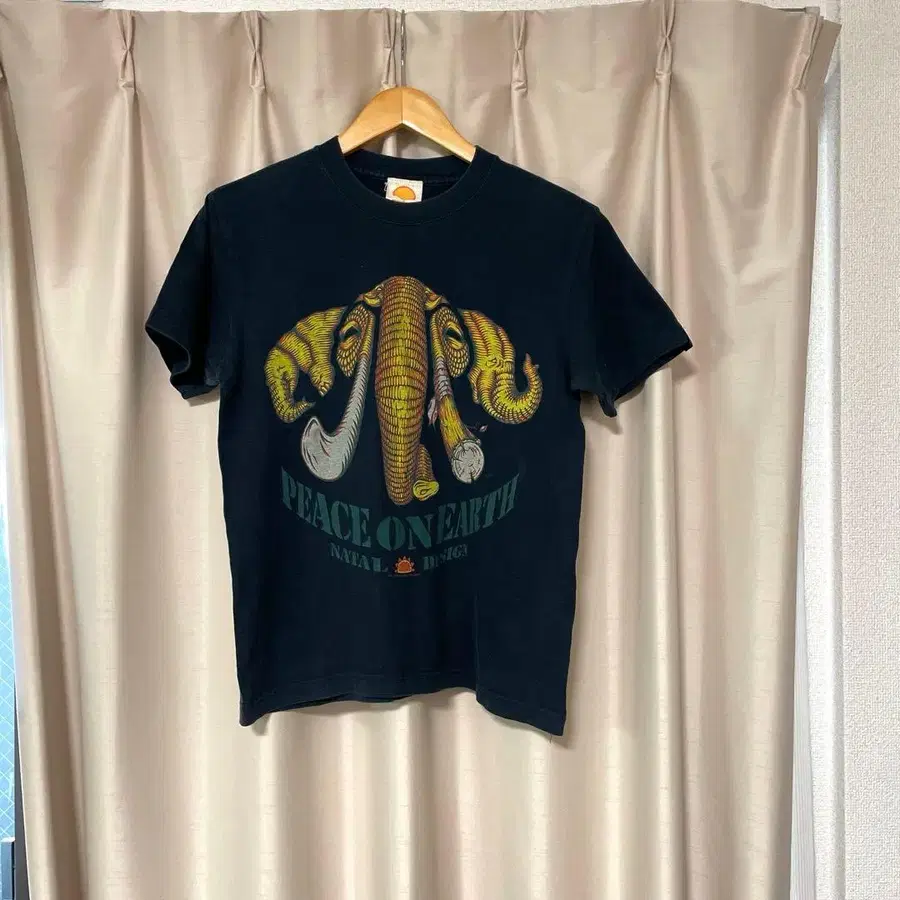 - 브랜드: NATAL DESIGN (네이탈 디자인) - 모델명: PEACE ON EARTH 2007 - 색상: 블랙 약 20년 전에 시모키타자와에서 새상품으로 구매했습니다. 입지 않아서 판매합니다. 어깨 너비/가슴 너비/소매 길이/기장 어깨 너비 - 40cm 가슴 너비 - 44cm 소매 길이 - 9cm 기장 - 60cm 색상 - 블랙 계열 패턴 디자인 - 프린트 (로고 등)