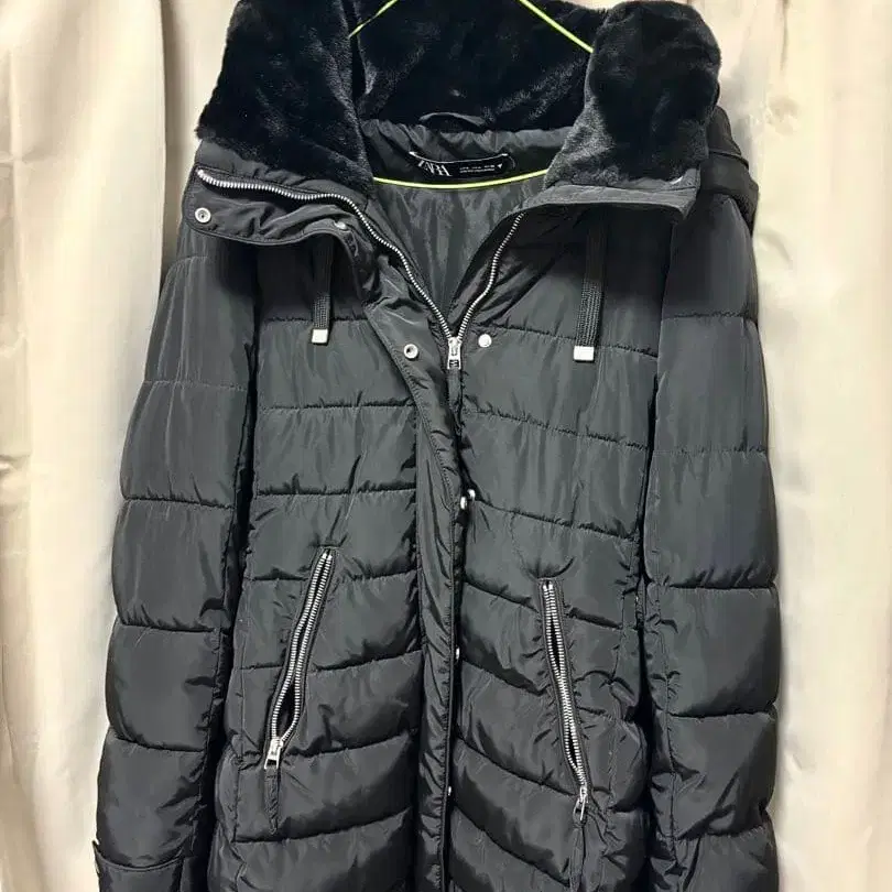 ZARA 자라 다운 코트 후드 퍼 보아 뒷면 벨트 A라인 인기 다운 코트입니다