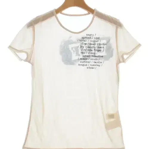 [ 실측치수(cm) ] 가슴 너비: 38.5cm, 어깨 너비: 35.5cm, 소매 길이: 14cm, 기장: 57cm