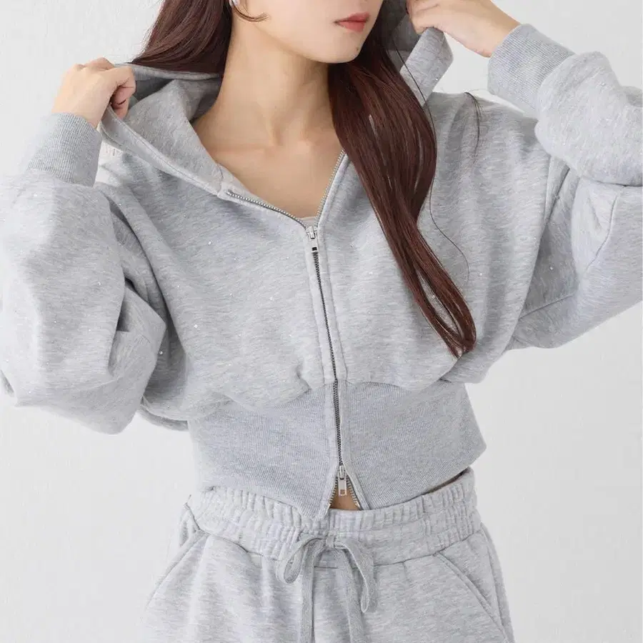 NICE CLAUP 비쥬 숏 후드티 그레이 멜란지 그레이