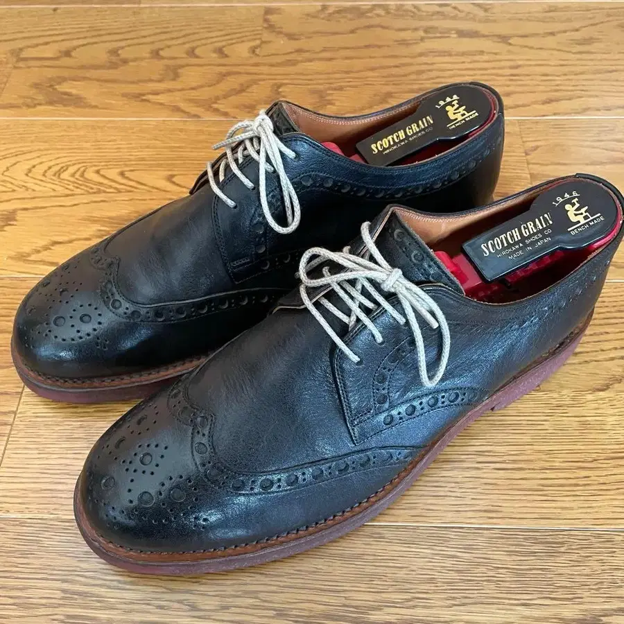 스코치 그레인 도치기 가죽 풀 브로그 블랙 F-1164 25.5