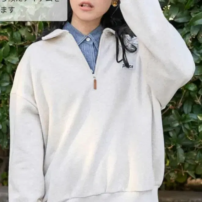 12/15 가격 인하했습니다! 택 없음 (종이 택은 떼었지만 택만 보관 중이라 함께 드릴 수 있습니다), 새상품 색상: 내추럴 다른 의류와 함께 보관했기 때문에 사소한 부분까지 신경 쓰이시는 분은 삼가해 주세요. 하프 지퍼, 폴로 옷깃의 인기 디자인 맨투맨 ☆ 심플한 디자인과 루즈한 실루엣이 매력 ☆ 롱 시즌 착용감 좋은 쭈리 원단, 단품으로도 물론 레이어드 스타일도 즐길 수 있습니다 ♪ 정가 7480엔 사이즈: 총장 어깨 너비 가슴 너비 팔 길이 F: 66 60 65 51 색상: 화이트 계열