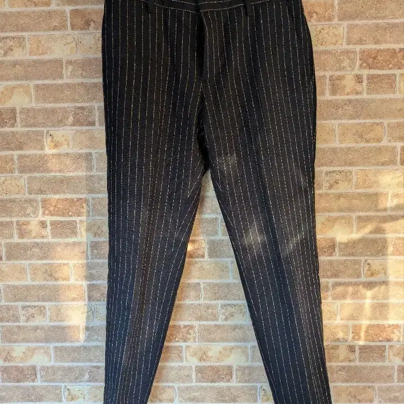 • 투 턱 울 스트라이프 슬랙스 팬츠 남성용 L 정도 스트레이트
