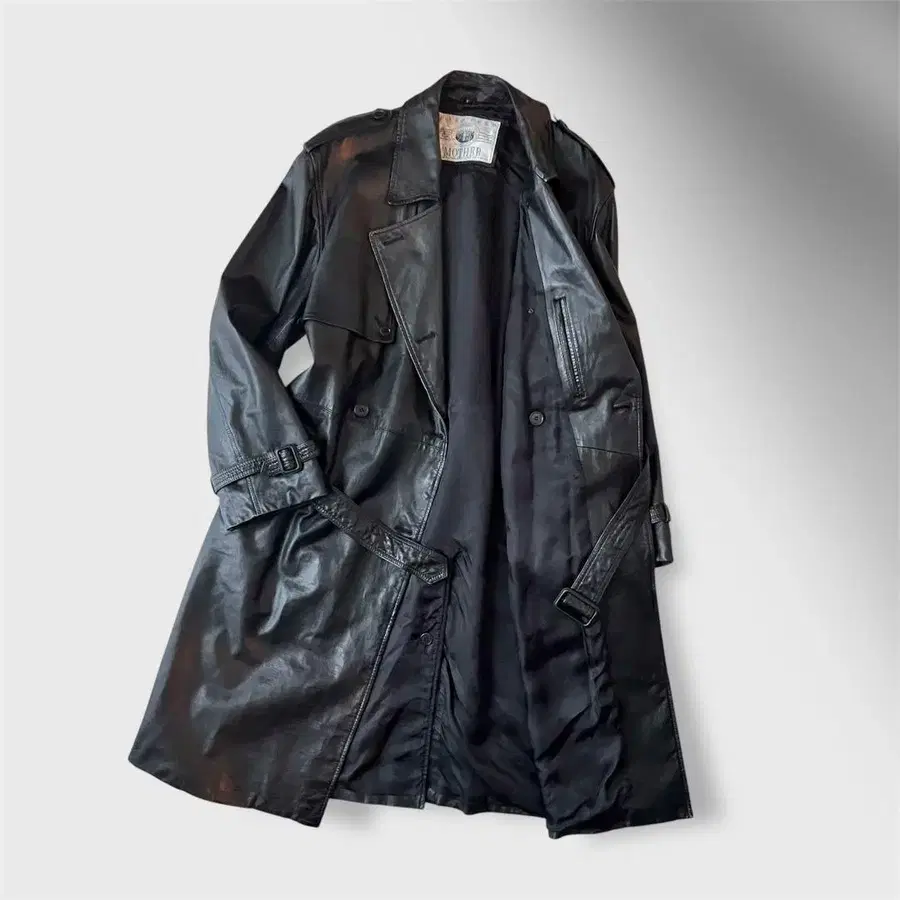 새상품급 빈티지 맥시 길이 카우 가죽 트렌치코트 소가죽 블랙 구제 의류