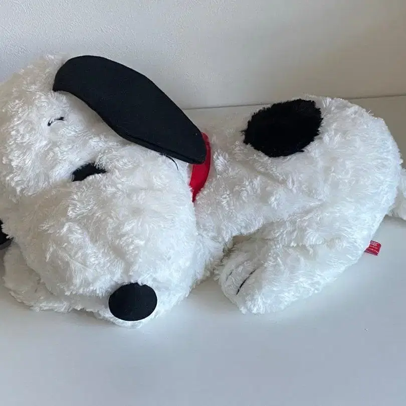 SNOOPY 스누피의 귀여운 봉제 인형, 빨간색 목걸이 포함 - 모델명: 스누피 봉제 인형 - 색상: 화이트/블랙 - 사이즈: 약 45cm - 상태: 양호
